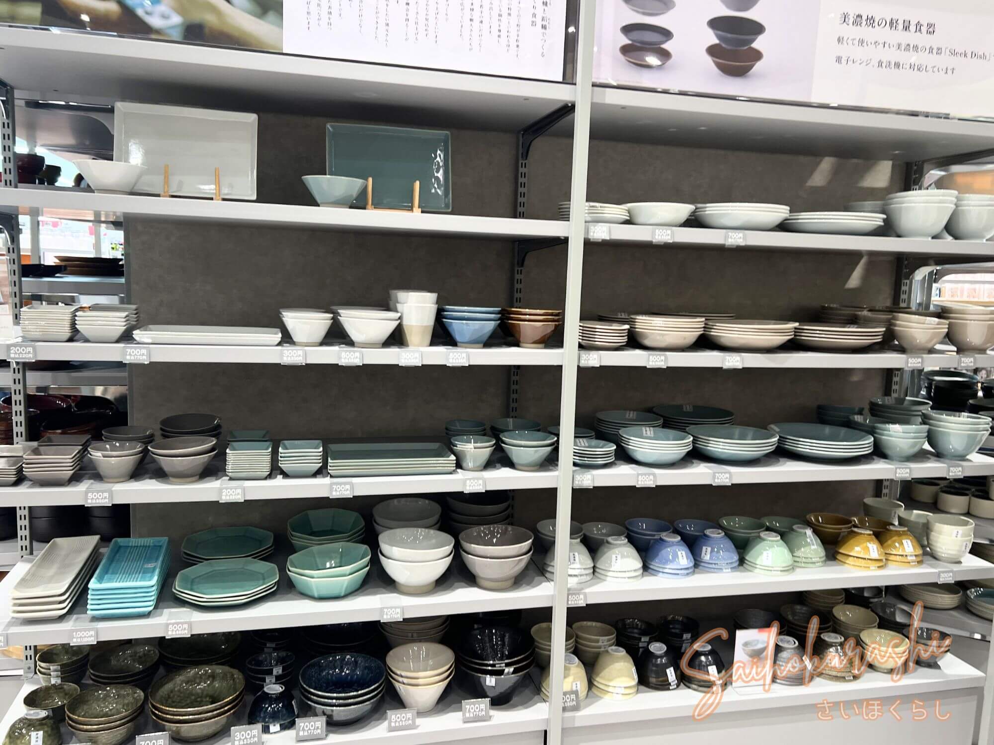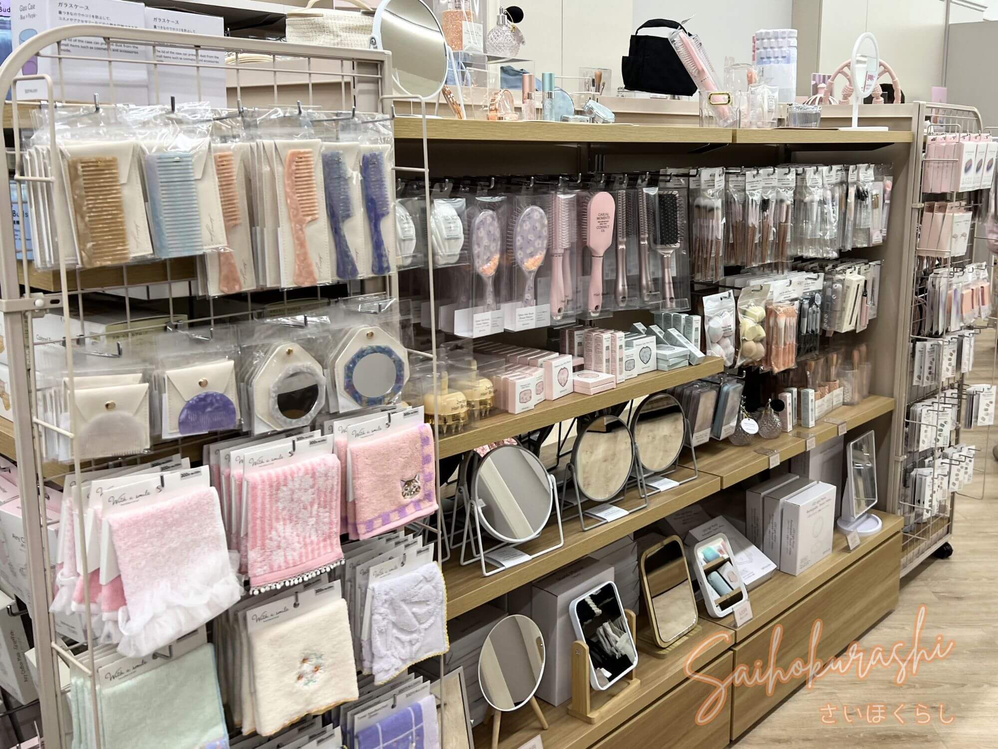100円ショップの延長というより、“ちょっといい日用品を気軽に選べる売場”という感じで、ここだけでもじっくり見たくなる雰囲気です。