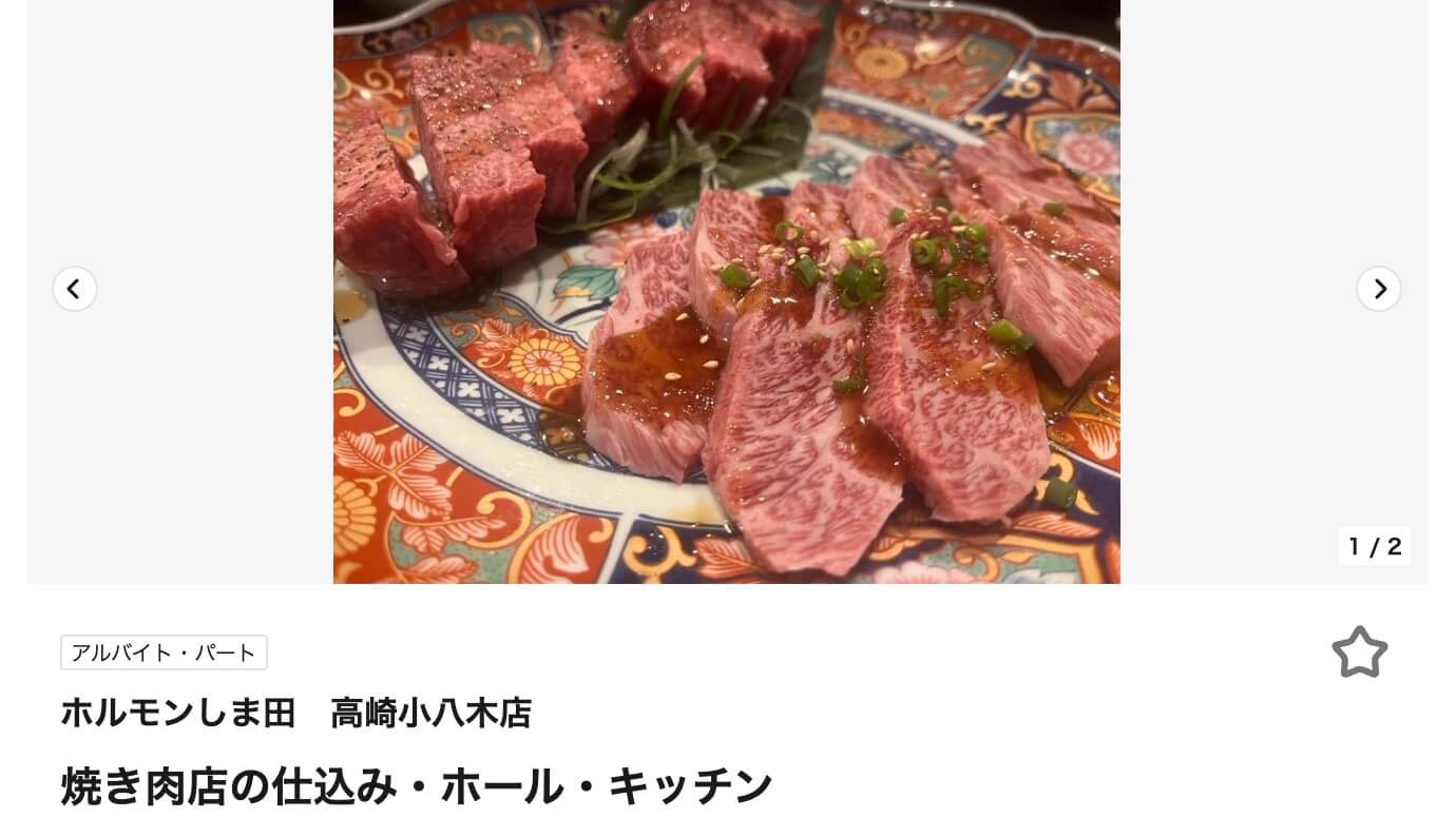 ▼『ホルモンしま田 高崎小八木店』として求人情報も出ています。