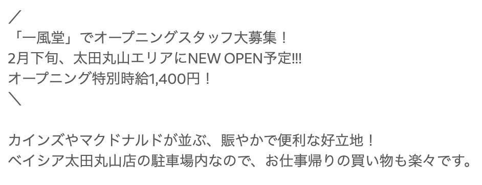 - 店名:一風堂(ベイシア太田丸山店駐車場内/正式名称は確認中)