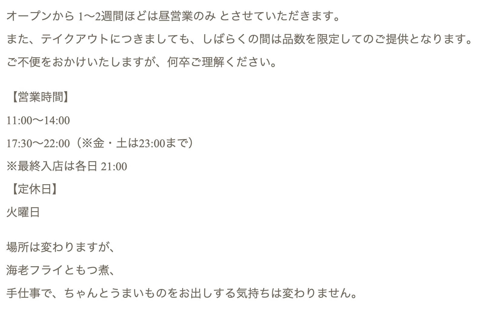 公式Instagramによると、オープンから1〜2週間ほどは昼営業のみとする予定。