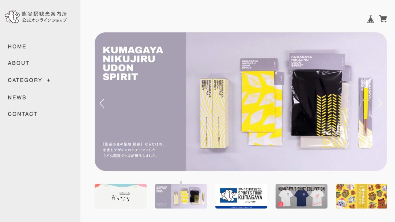 新しいオンラインショップでは、熊谷駅観光案内所で取り扱っている観光協会オリジナルグッズを中心に販売しています。