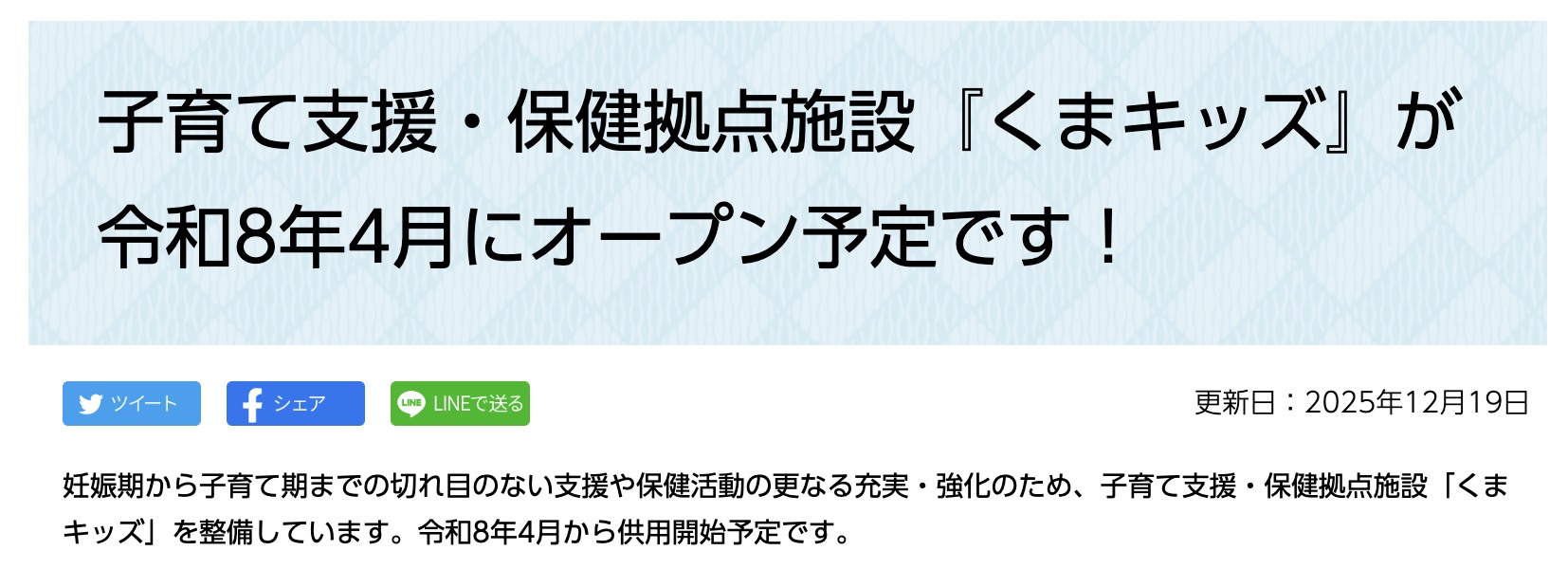 『くまキッズ』のオープン情報(熊谷市公式サイトより)