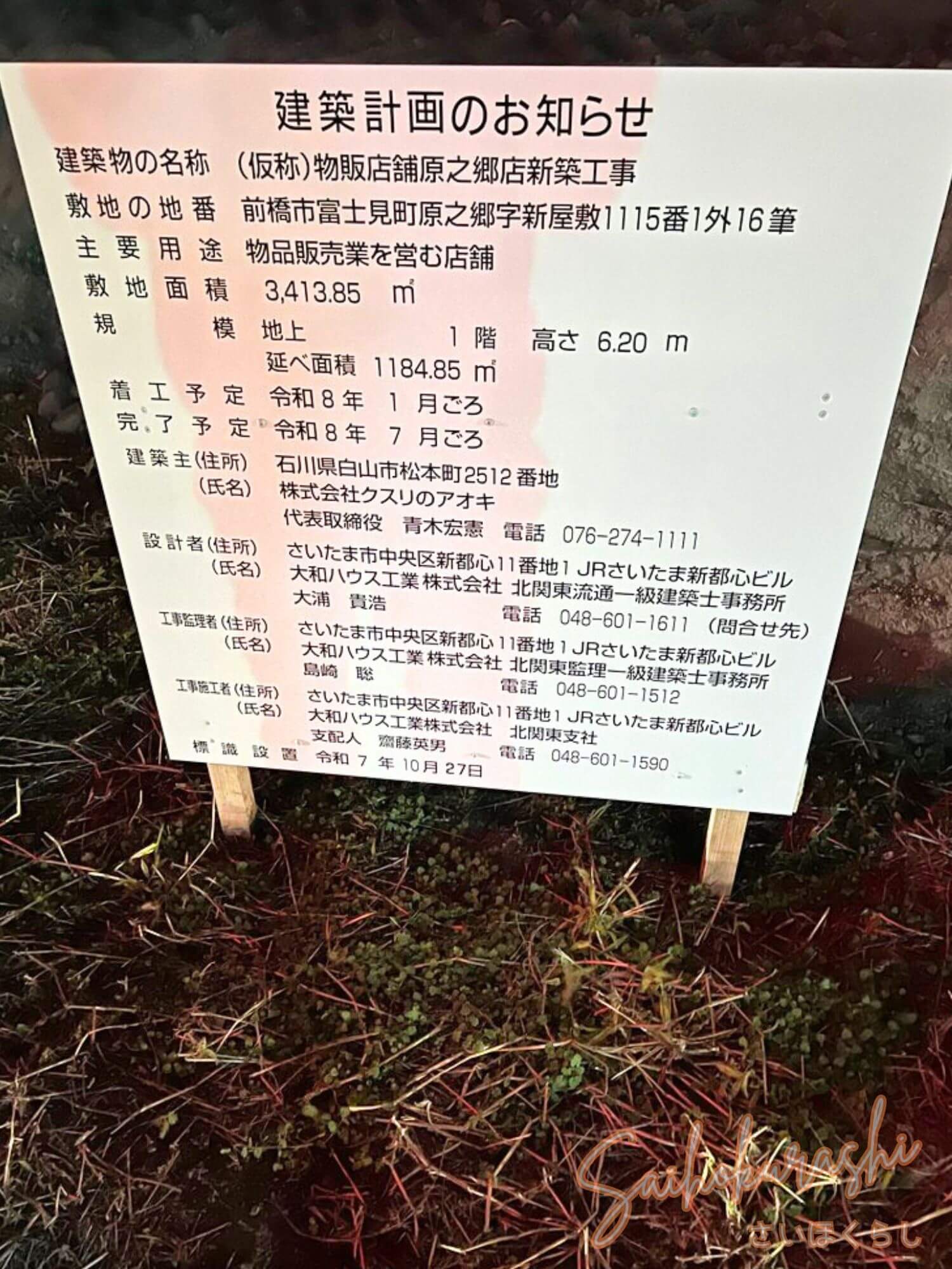 前橋市富士見町原之郷に『クスリのアオキ(仮称)』建設計画が判明(群馬・前橋市)