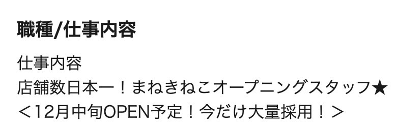 ▼『カラオケまねきねこ 沼田材木町店』のオープン情報(求人情報より)