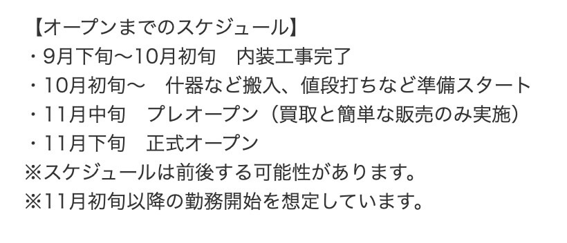 オープンは2025年11月下旬を予定しており、11月中旬にはプレオープンとして買取と簡単な販売が先行実施されるようです。