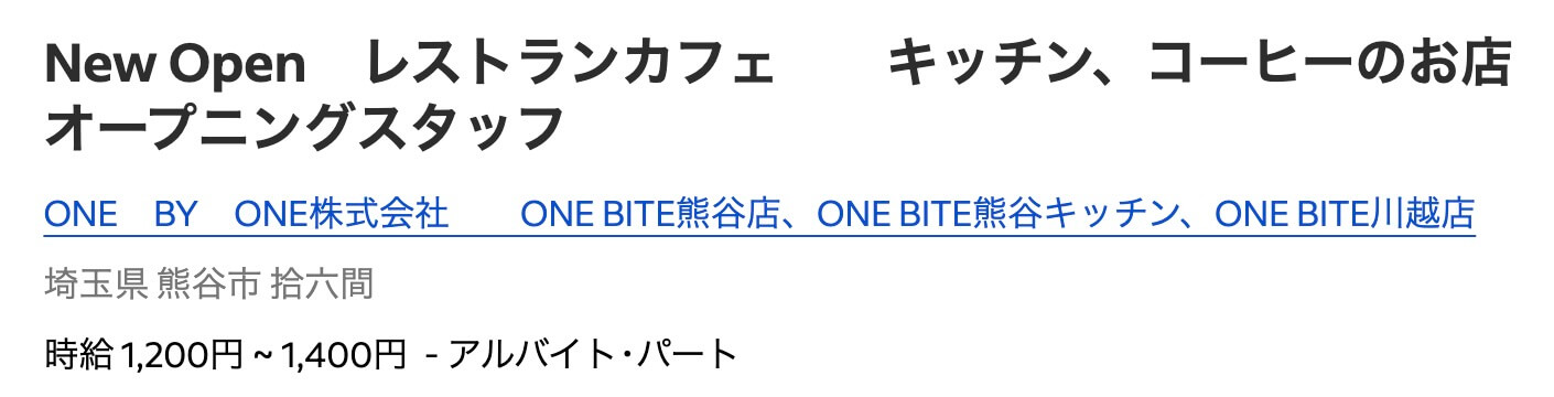 『ONE BITE 熊谷キッチン』のオープン情報(求人情報より)