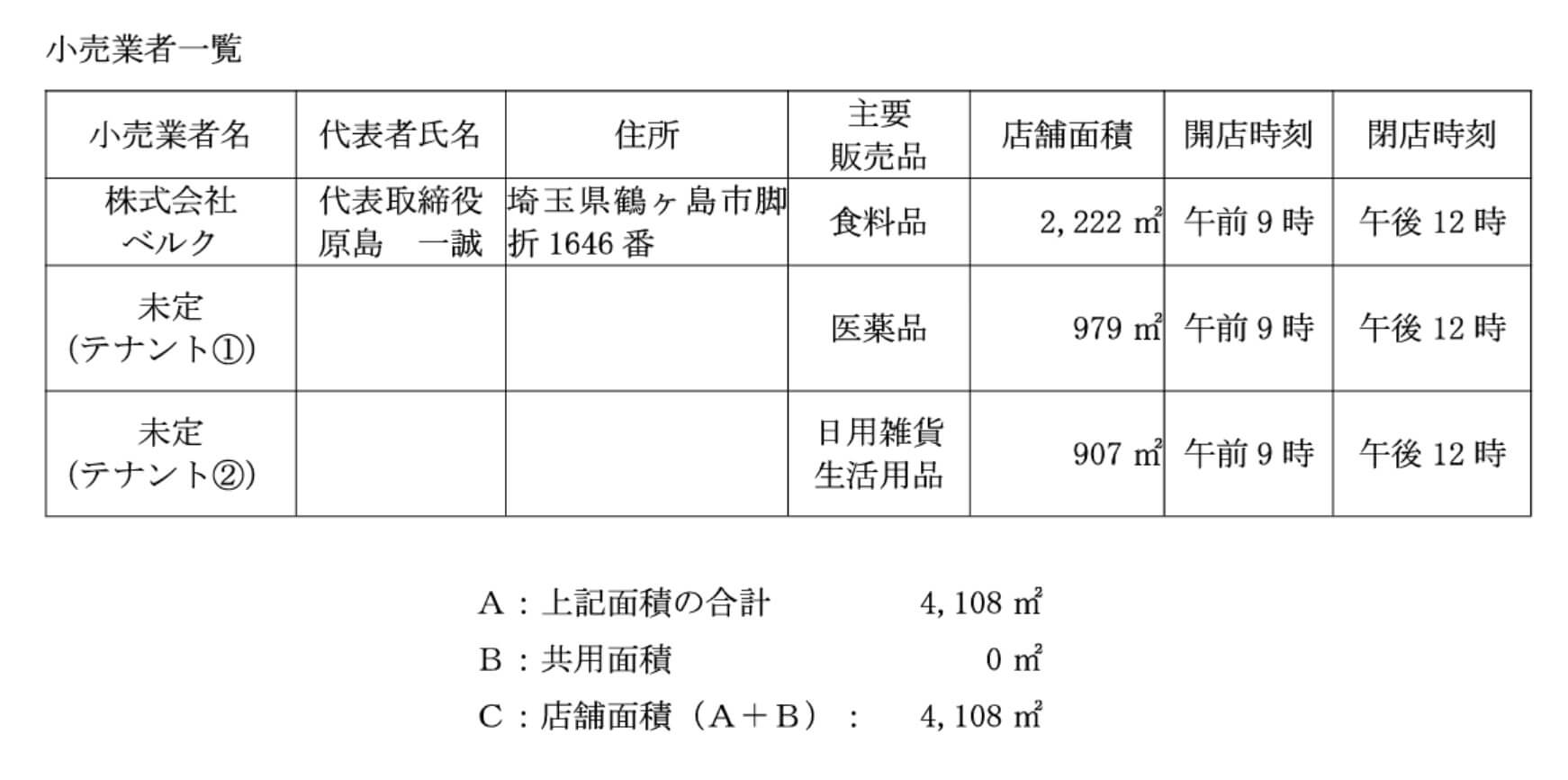 • 医薬品系テナント(社名未公表)※ドラッグストアの可能性