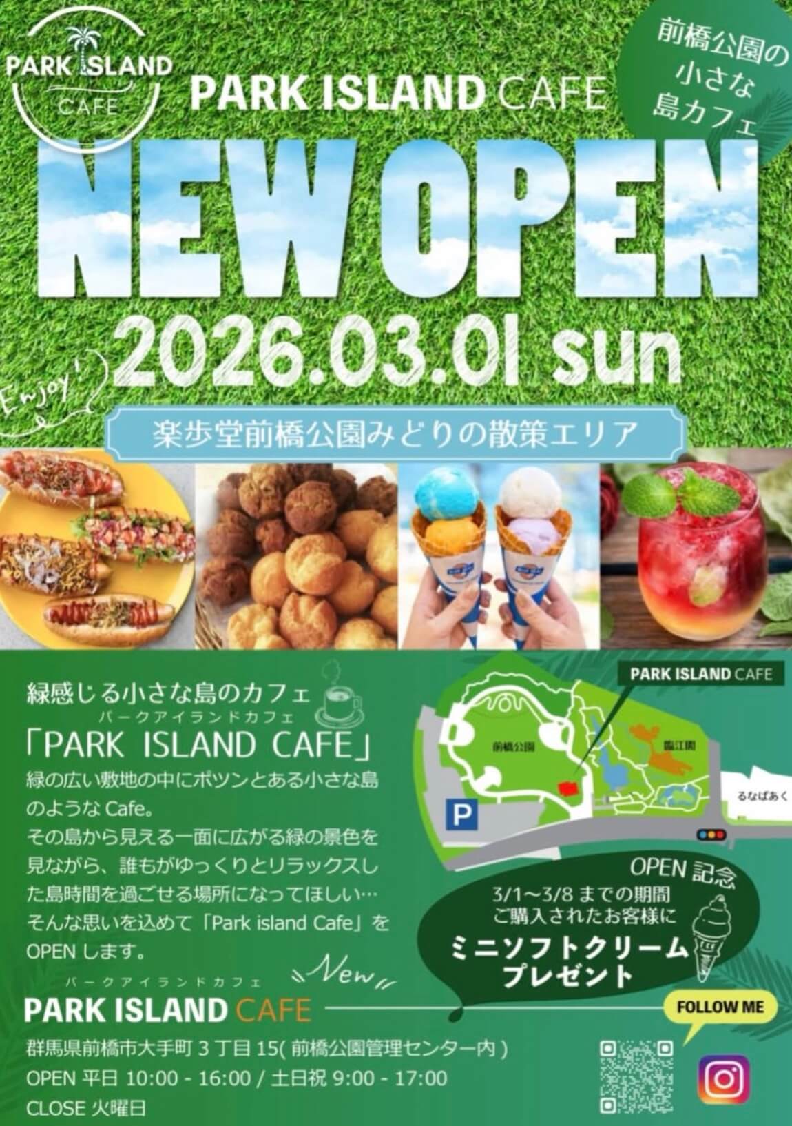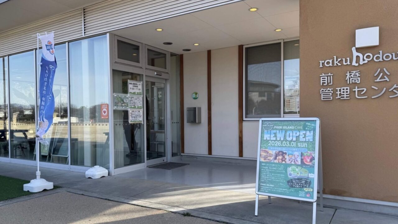 群馬県前橋市大手町の「楽歩堂前橋公園」内に、カフェ『PARK ISLAND CAFE(パークアイランドカフェ)』2026年3月1日にオープンしたようです。