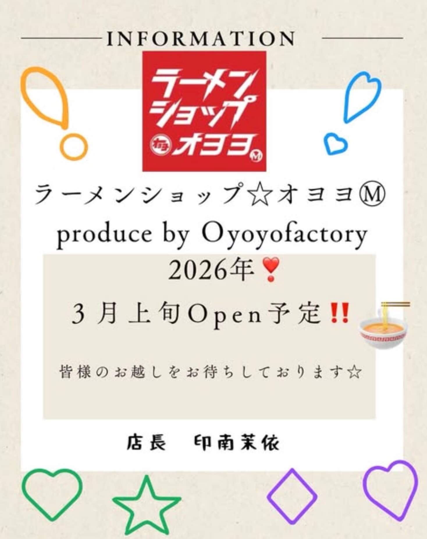 『ラーメンショップ☆オヨヨ』のオープン情報(公式Instagramより)