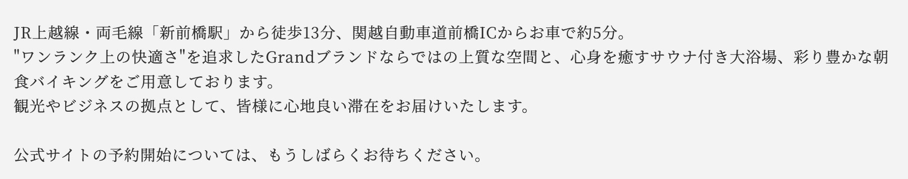 ▼『ホテルルートインGrand前橋』のオープン情報(公式サイトより)