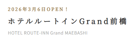 2026年2月頃に開業を予定していた『ホテルルートインGrand前橋』ですが、公式サイトによると”2026年3月6日OPEN”と記載がありました。