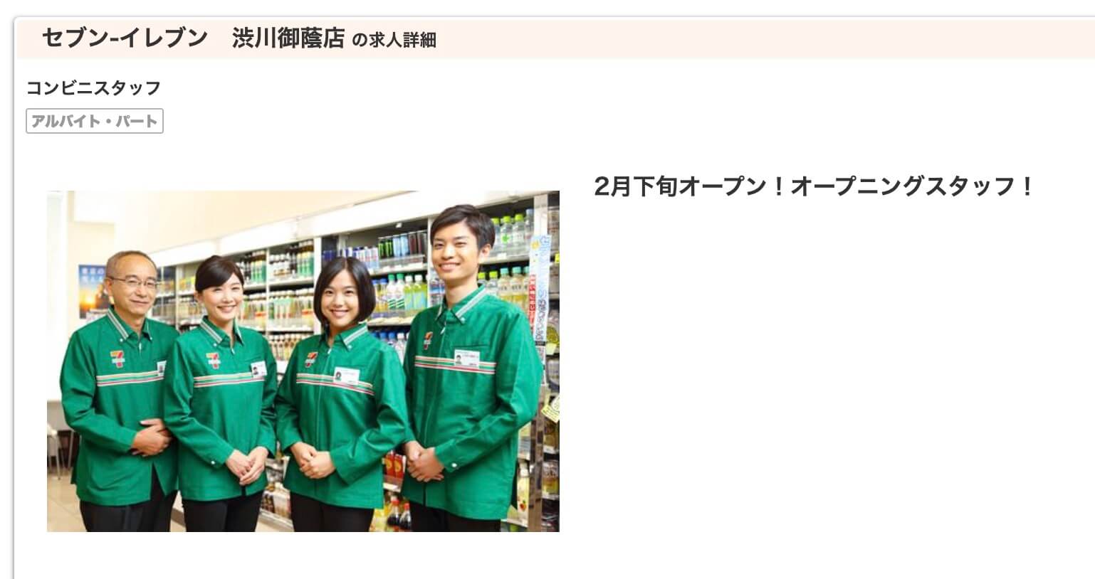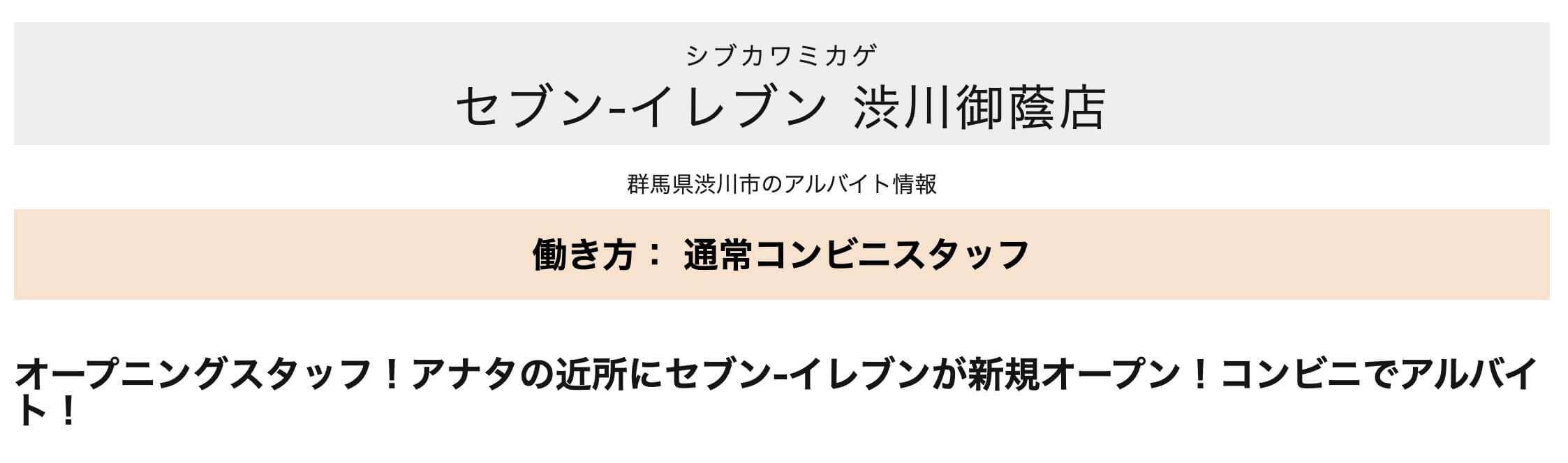 『セブンイレブン 渋川御蔭店』のオープン情報(求人情報より)