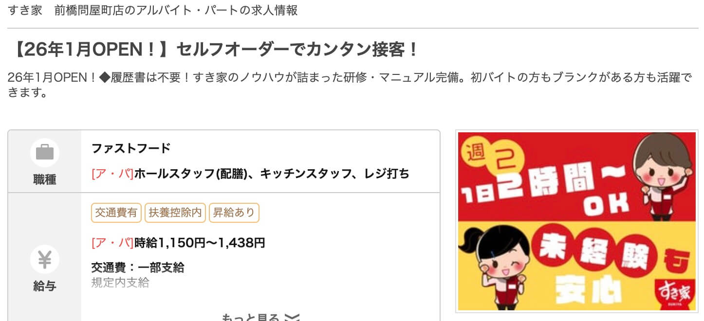 ▼『すき家 前橋問屋町店』のオープン情報(求人情報より)