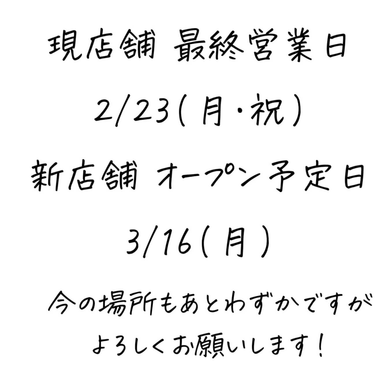 投稿によると、現店舗の最終営業日は2026年2月23日(月・祝)。