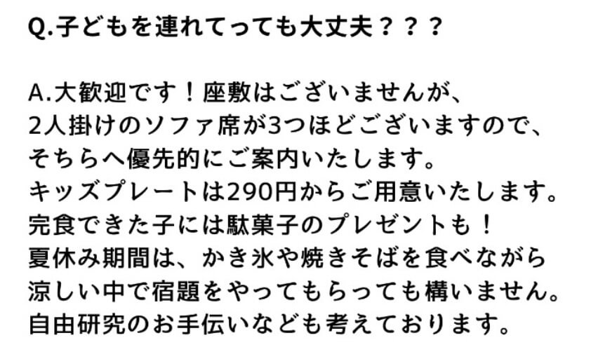 キッズプレート(290円)の用意もあるそうで、ファミリーでも気軽に立ち寄れそうな雰囲気です。