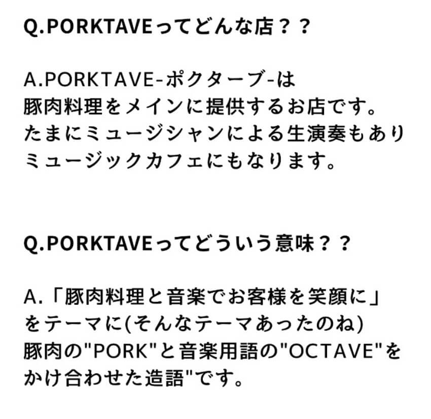 店名「PORKTAVE」は、豚肉の“PORK”と、音楽用語の“OCTAVE”を組み合わせた造語で、