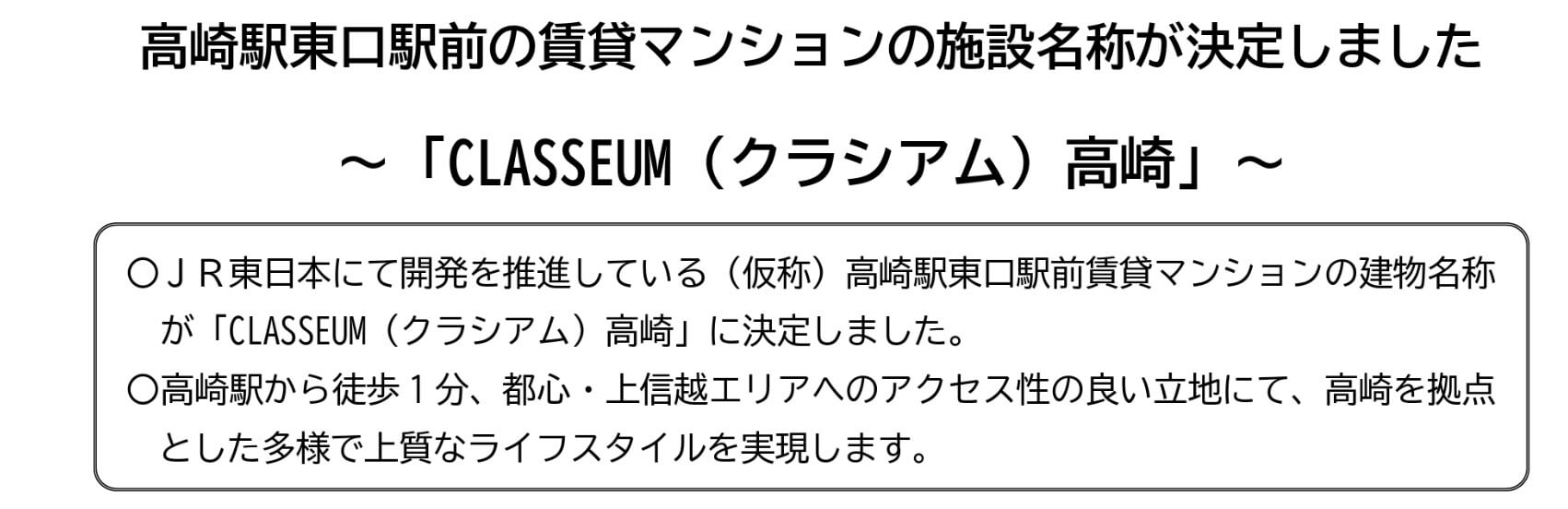 『CLASSEUM(クラシアム)高崎』プレスリリース(JR東日本資料より)