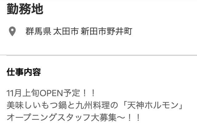 ▼『天神ホルモン』のオープン情報(求人情報より)