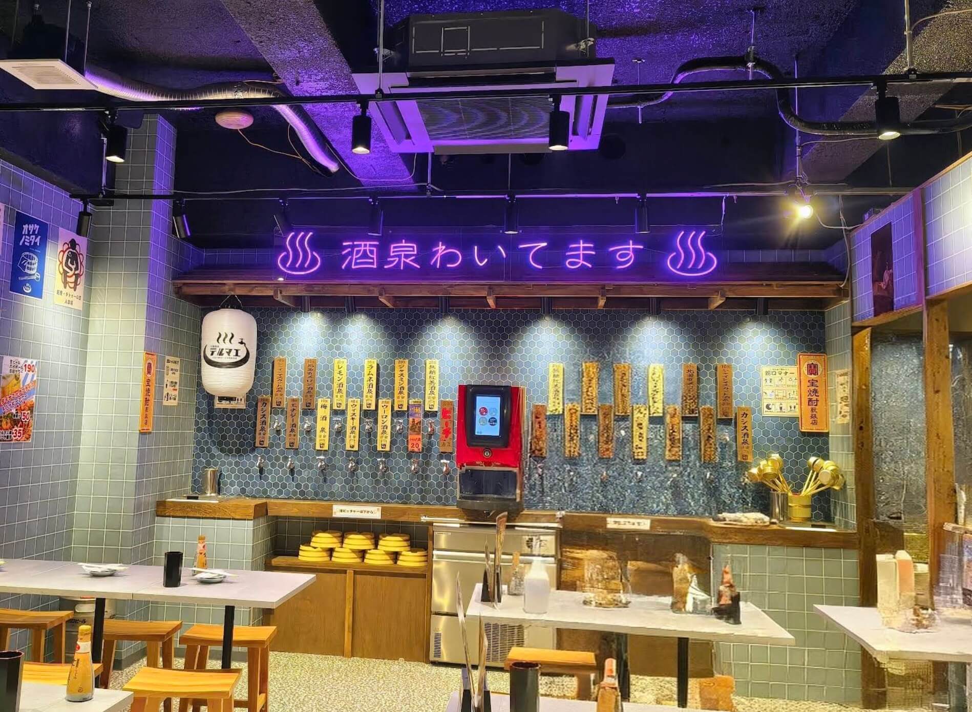 まるで温泉のように蛇口をひねるとドリンクが出てくるという仕組みで、セルフで楽しめるスタイルが人気を集めています。