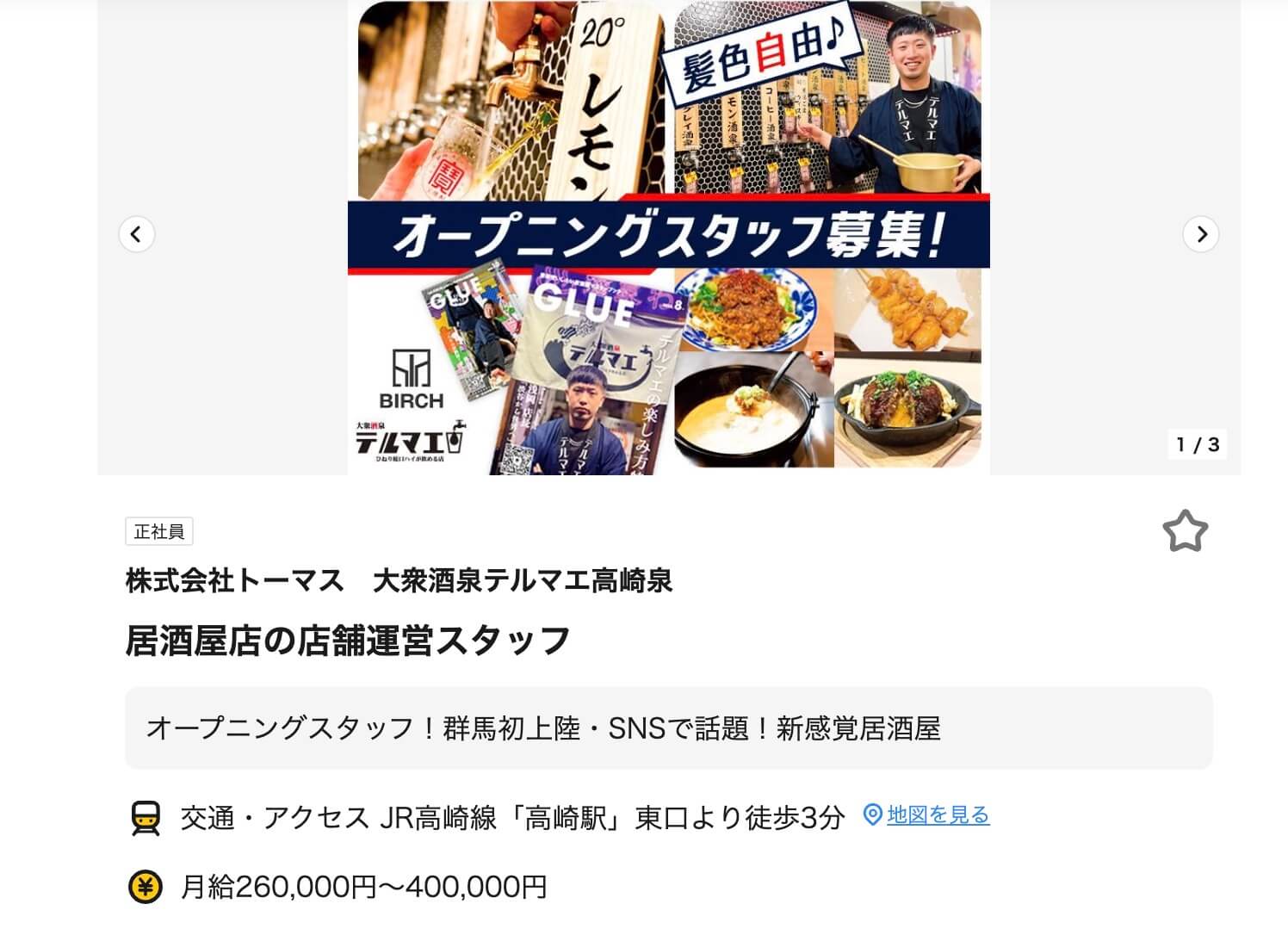 『大衆酒泉テルマエ 高崎泉』のオープン情報(求人情報より)