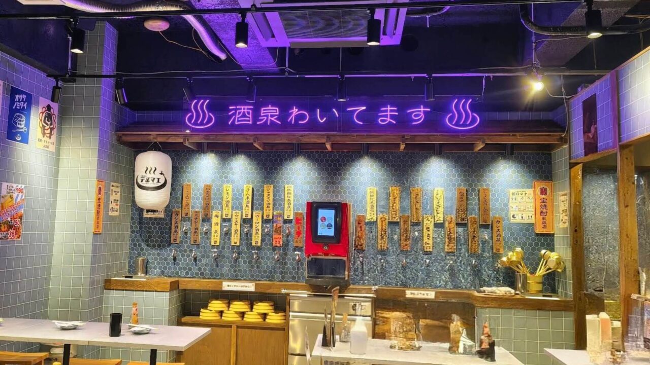 まるで温泉のように蛇口をひねるとドリンクが出てくるという仕組みで、セルフで楽しめるスタイルが人気を集めています。