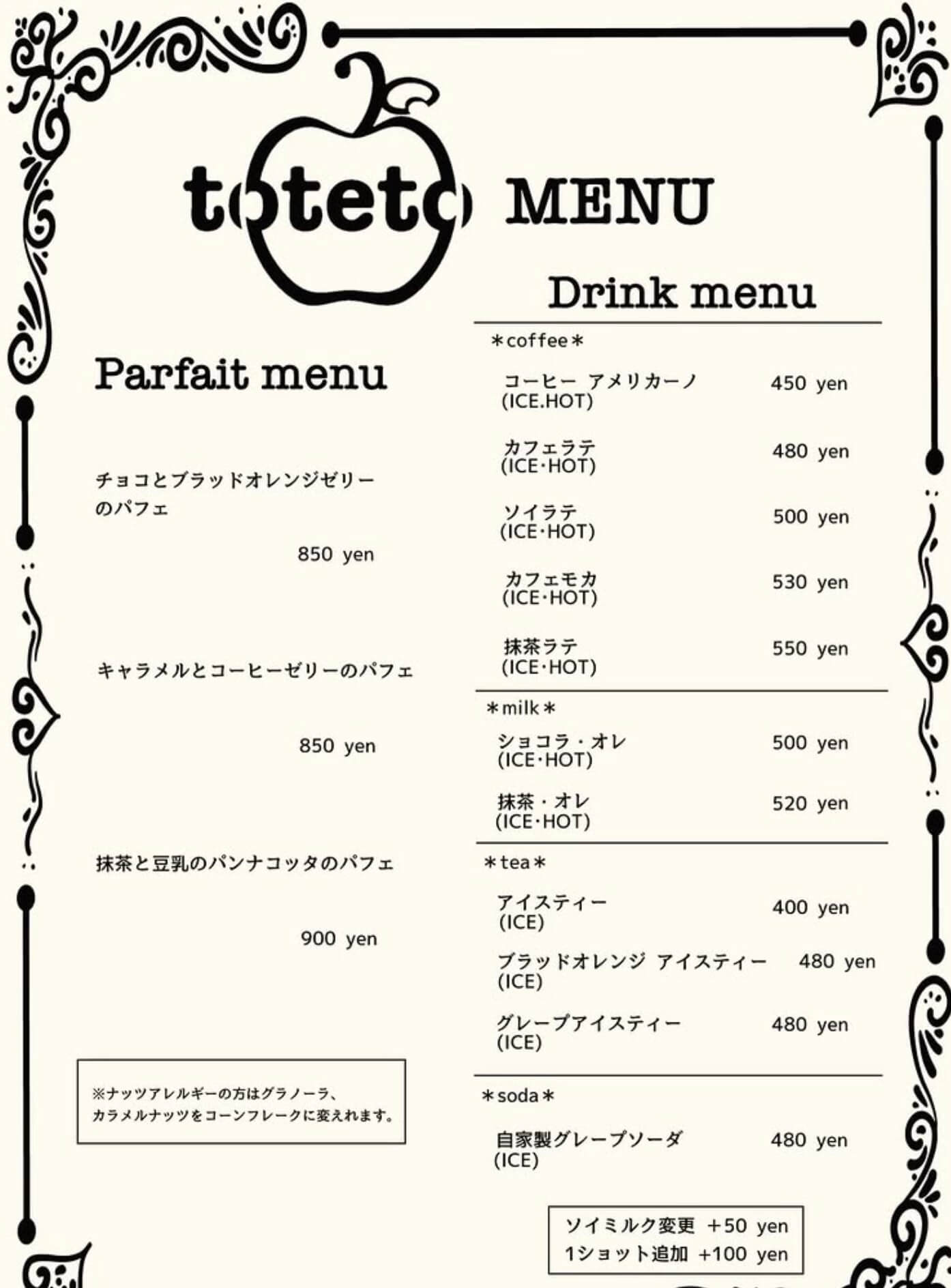 『toteto』は、パフェとコーヒーを中心としたテイクアウト専門のカフェ。