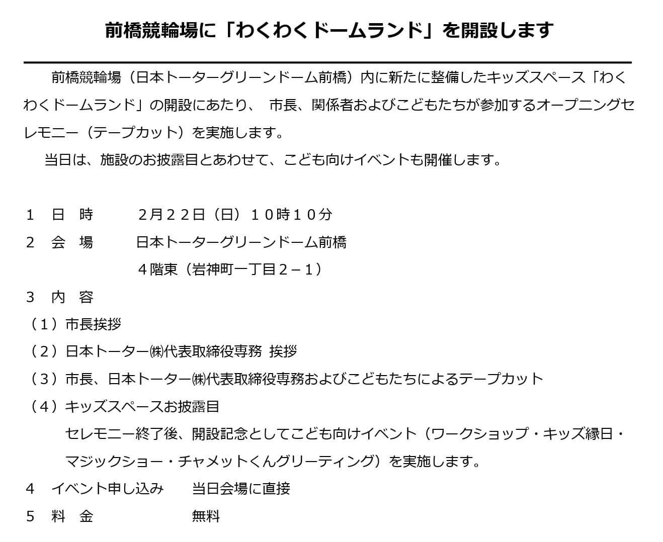 『わくわくドームランド』オープンイベントに関して(前橋市公式サイトより)