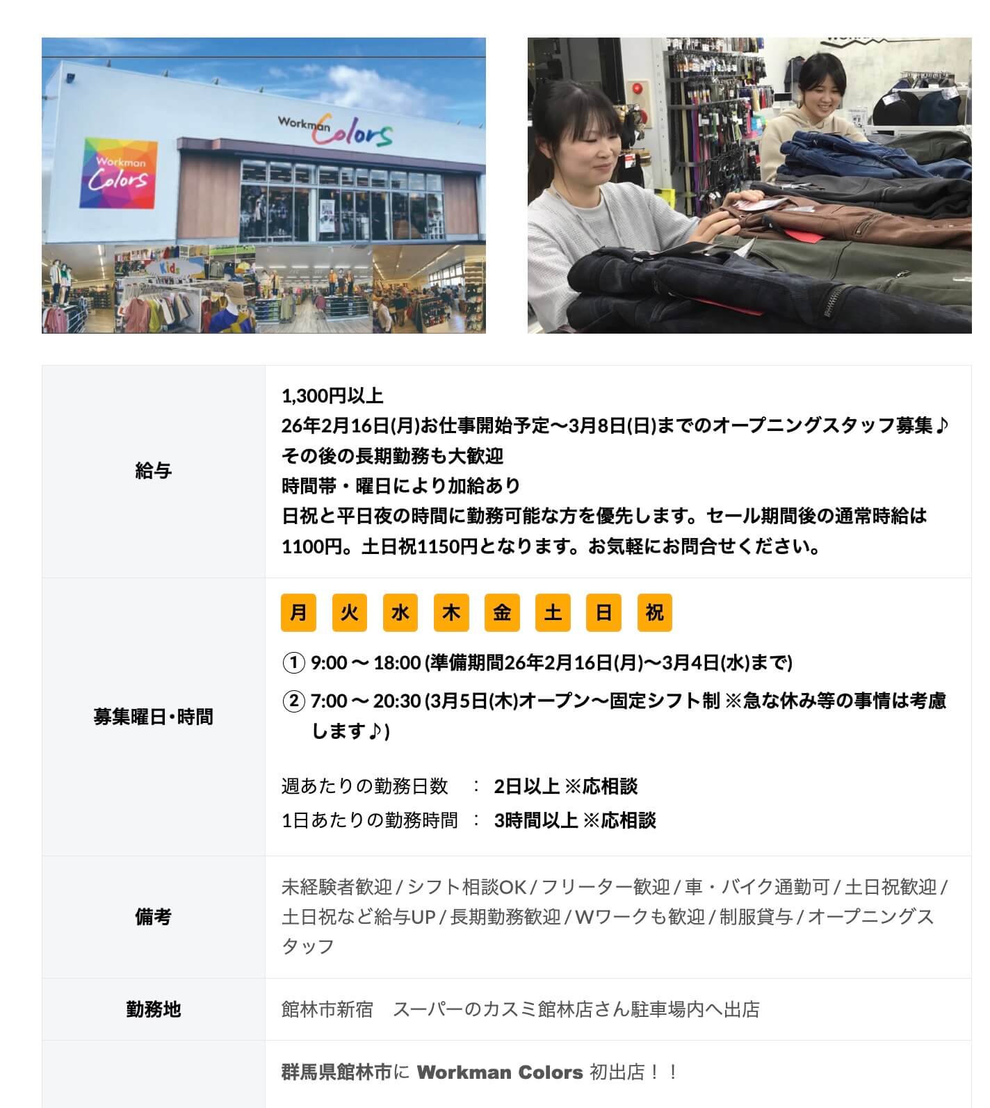 ▼『Workman Colors(ワークマンカラーズ)』のオープン情報(求人情報より)