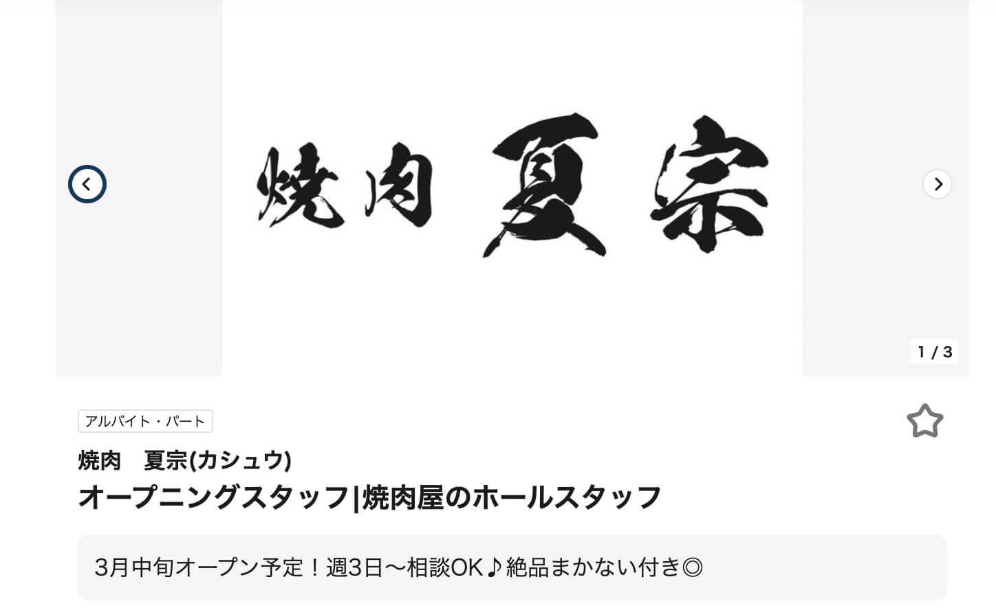 『焼肉 夏宗』のオープン情報(求人情報より)