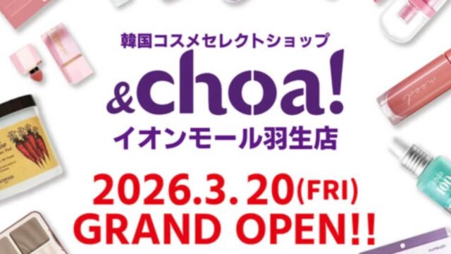 【新店】イオンモール羽生に韓国コスメ専門店『&choa!』が登場|2026年3月20日オープン予定!