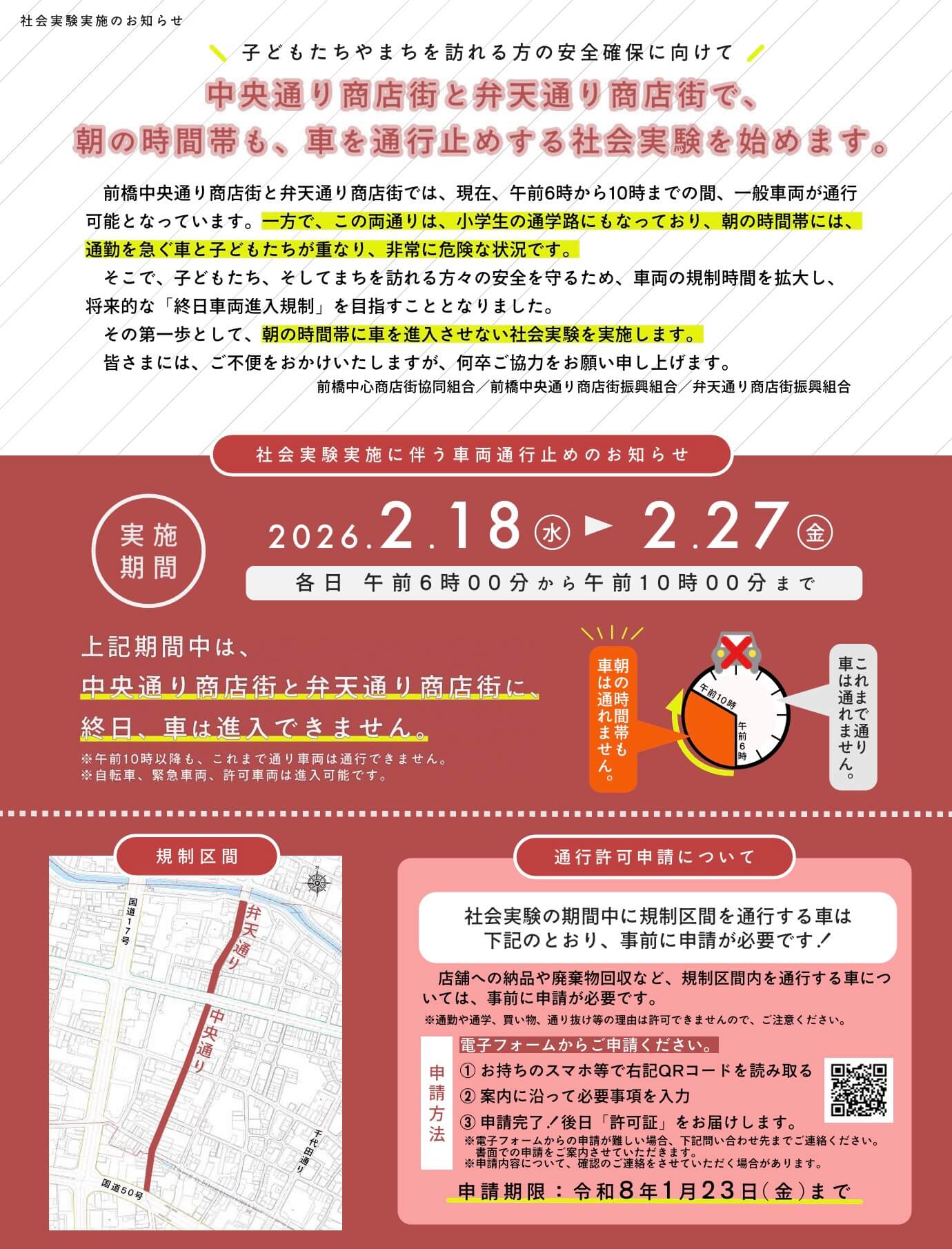 前橋中心街の朝時間帯車両進入禁止(社会実験)のお知らせ