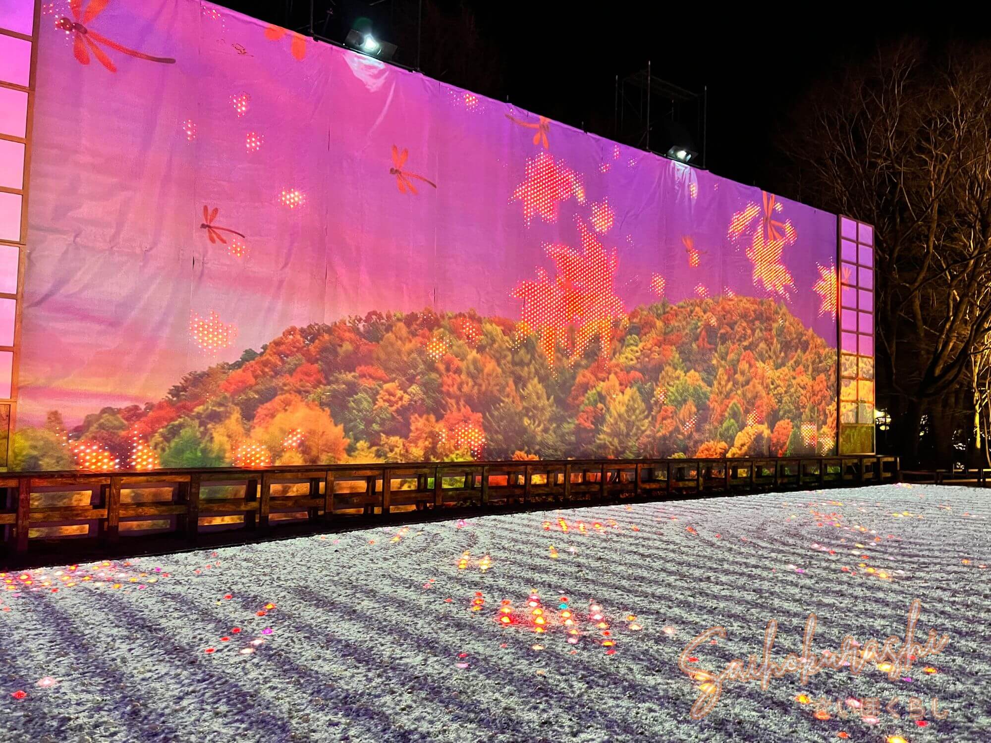 他にも木々に沿ってきらめくライトなど、景色そのものが変わるような演出が魅力。