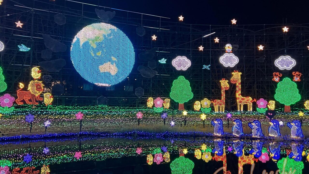 虹のアーチや、動物・花をモチーフにしたライトアップなど、“分かりやすくワクワクする”見どころが多め。