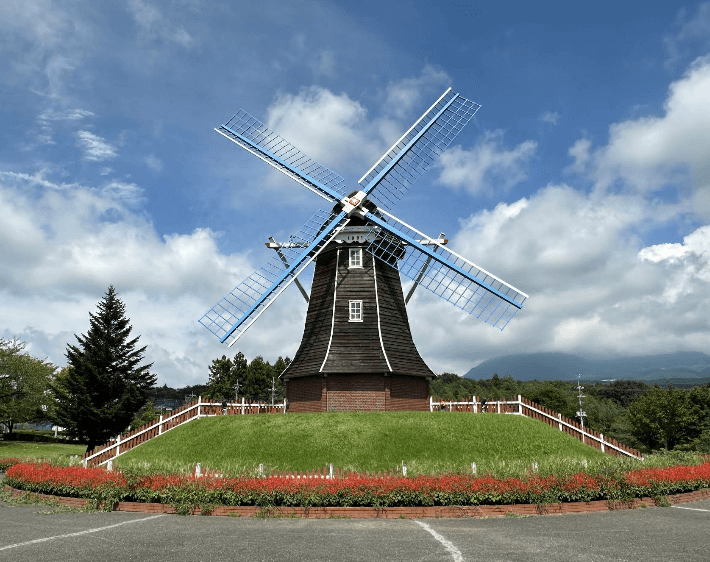 • 🌼 季節の花が楽しめるガーデンや風車がシンボル