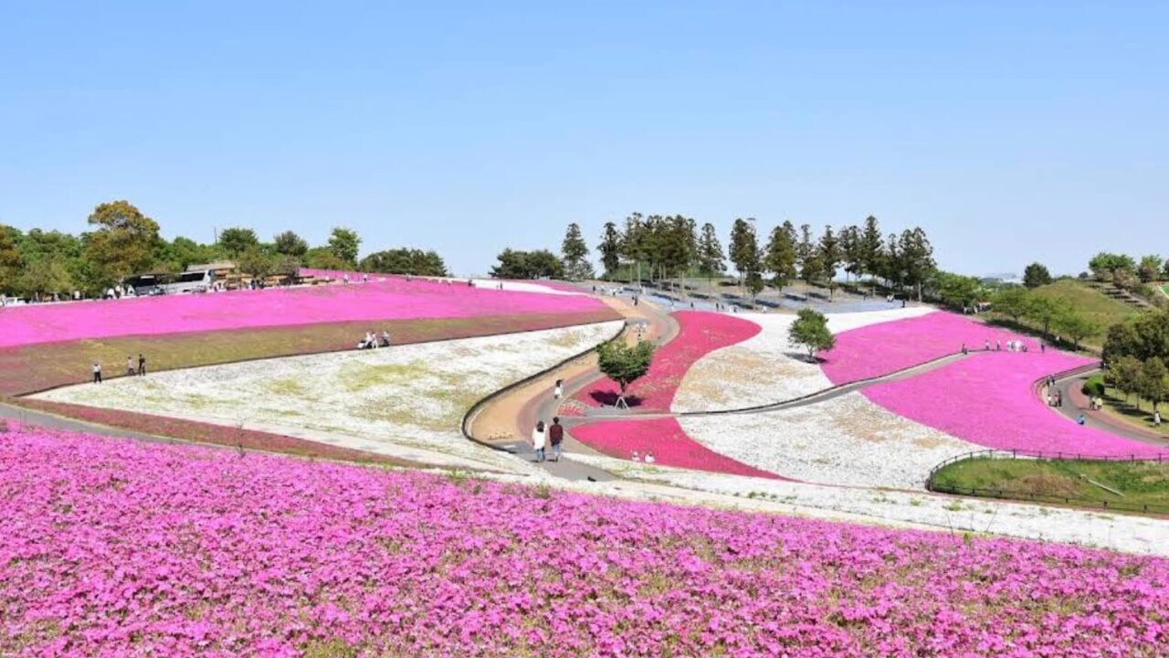 18ha超の丘陵地に広がる公園で、春には芝桜やネモフィラ、ポピー、菜の花、ツツジ、約250本の桜が花咲き、花見スポットとしても有名です 。