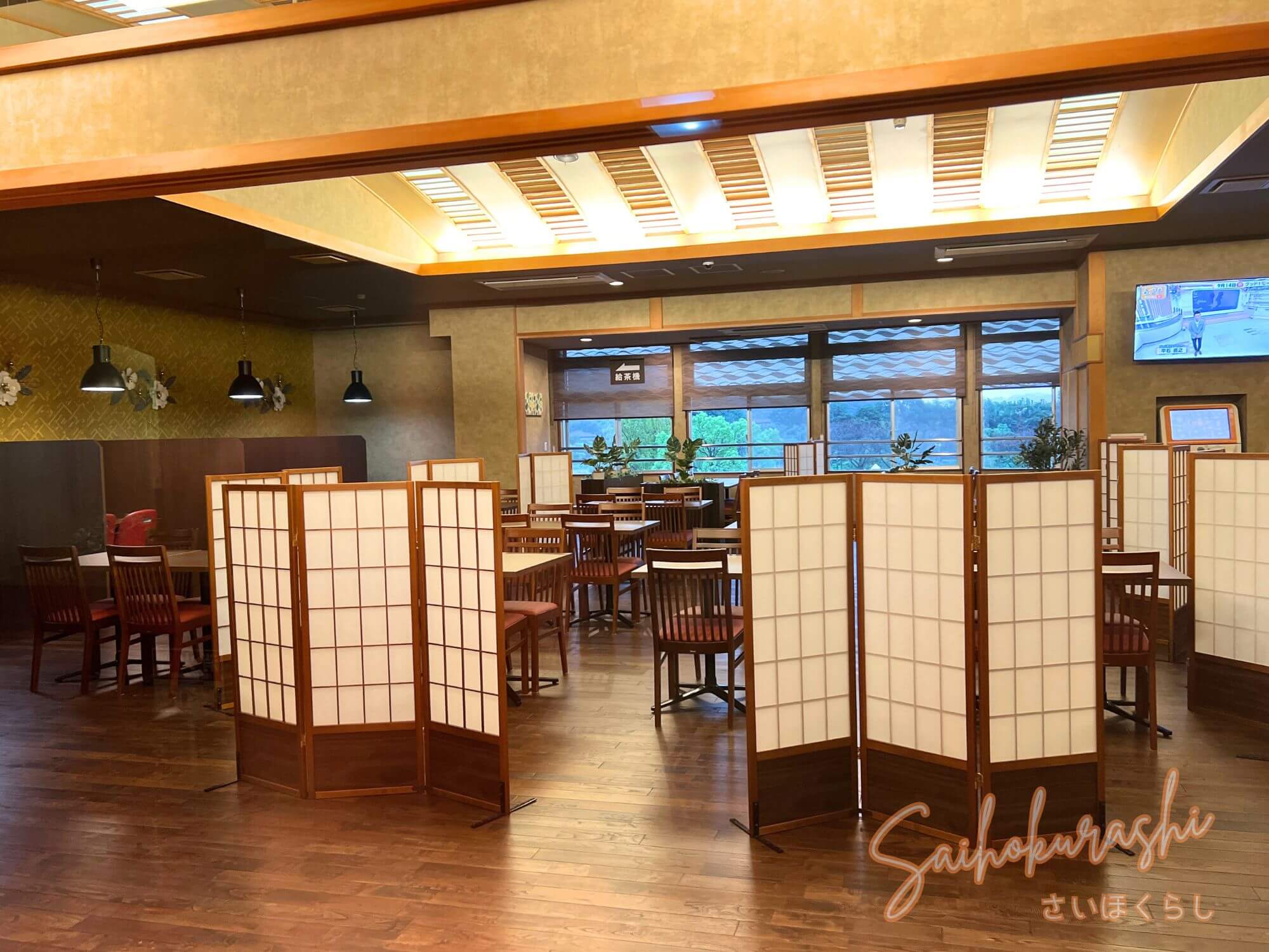 同系列の渋川にある「スカイテルメ」のようなお座敷はないですが、席数は十分あります。