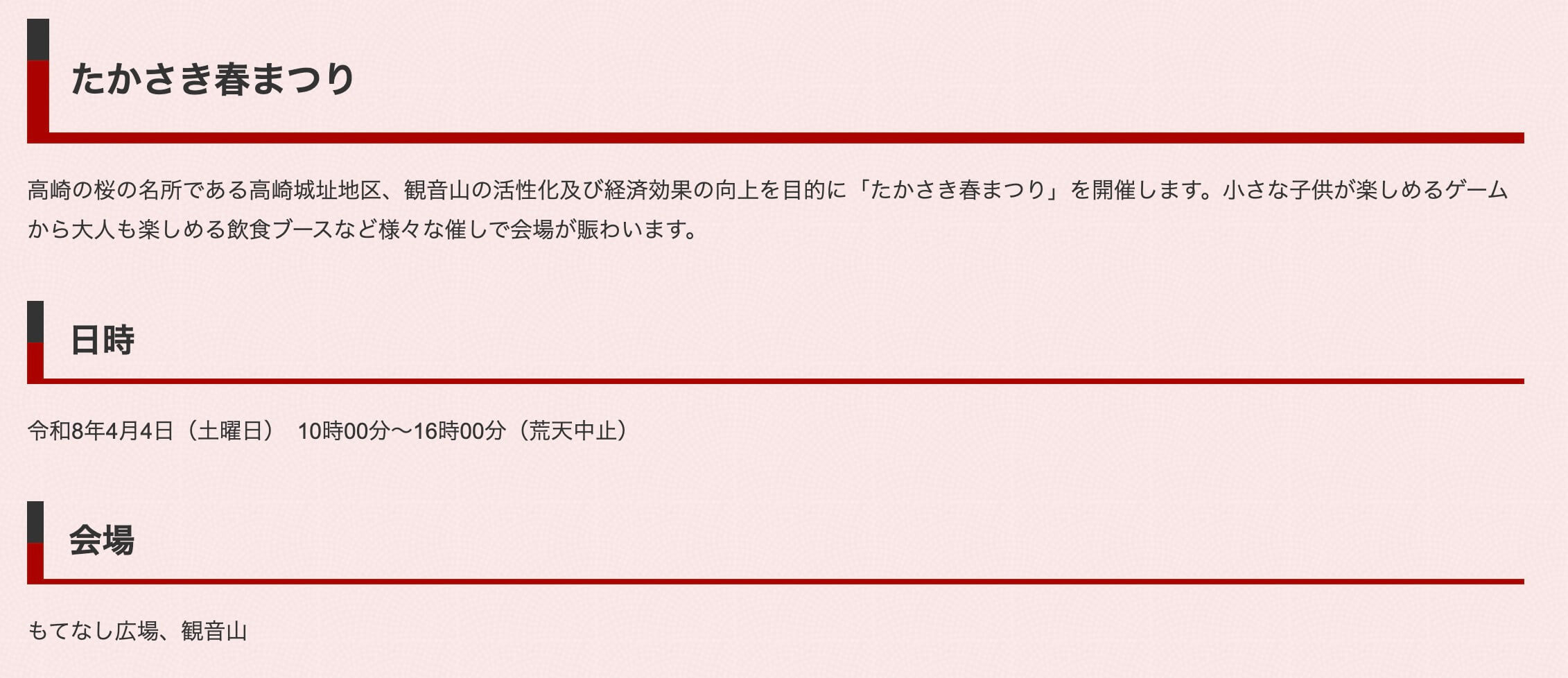 - 4月4日(土):第19回たかさき春まつり(群馬・高崎市)