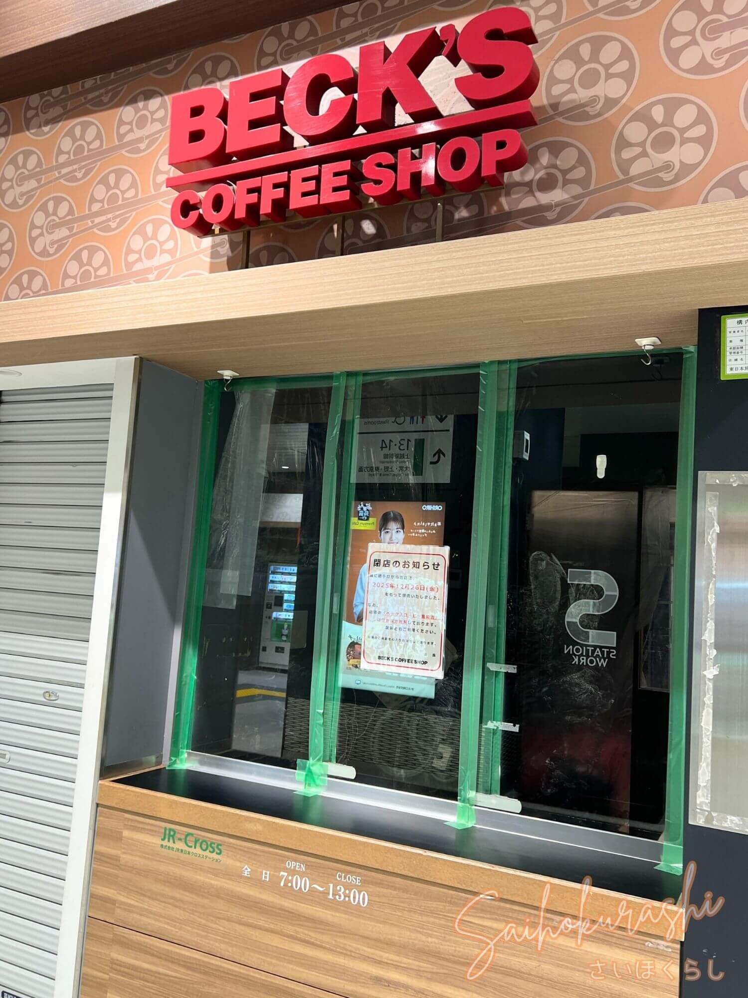 さらに、改札内の待合所にあった『BECK’S COFFEE SHOP 高崎新幹線』が閉店となりました。