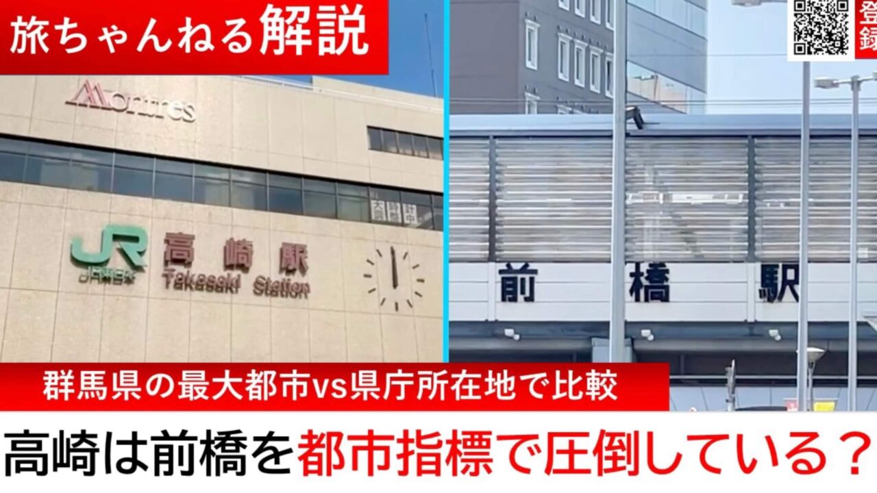 高崎市の都市機能は群馬県の県庁所在地、前橋市を圧倒しているのか?各種指標で徹底比較【旅ちゃんねる解説】